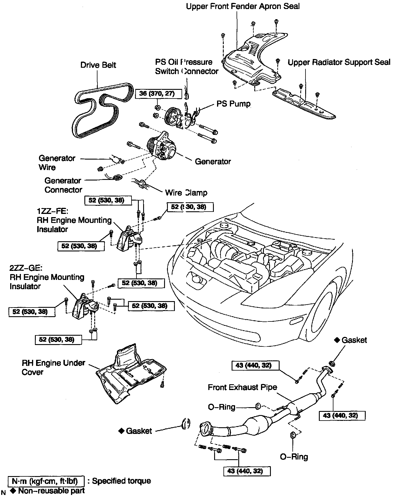 1ZZ-FE: 49 Nm (500 kgf-cm, 36 ft. lbs.)