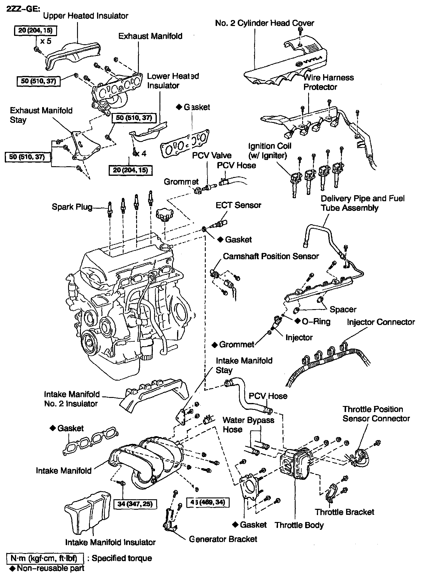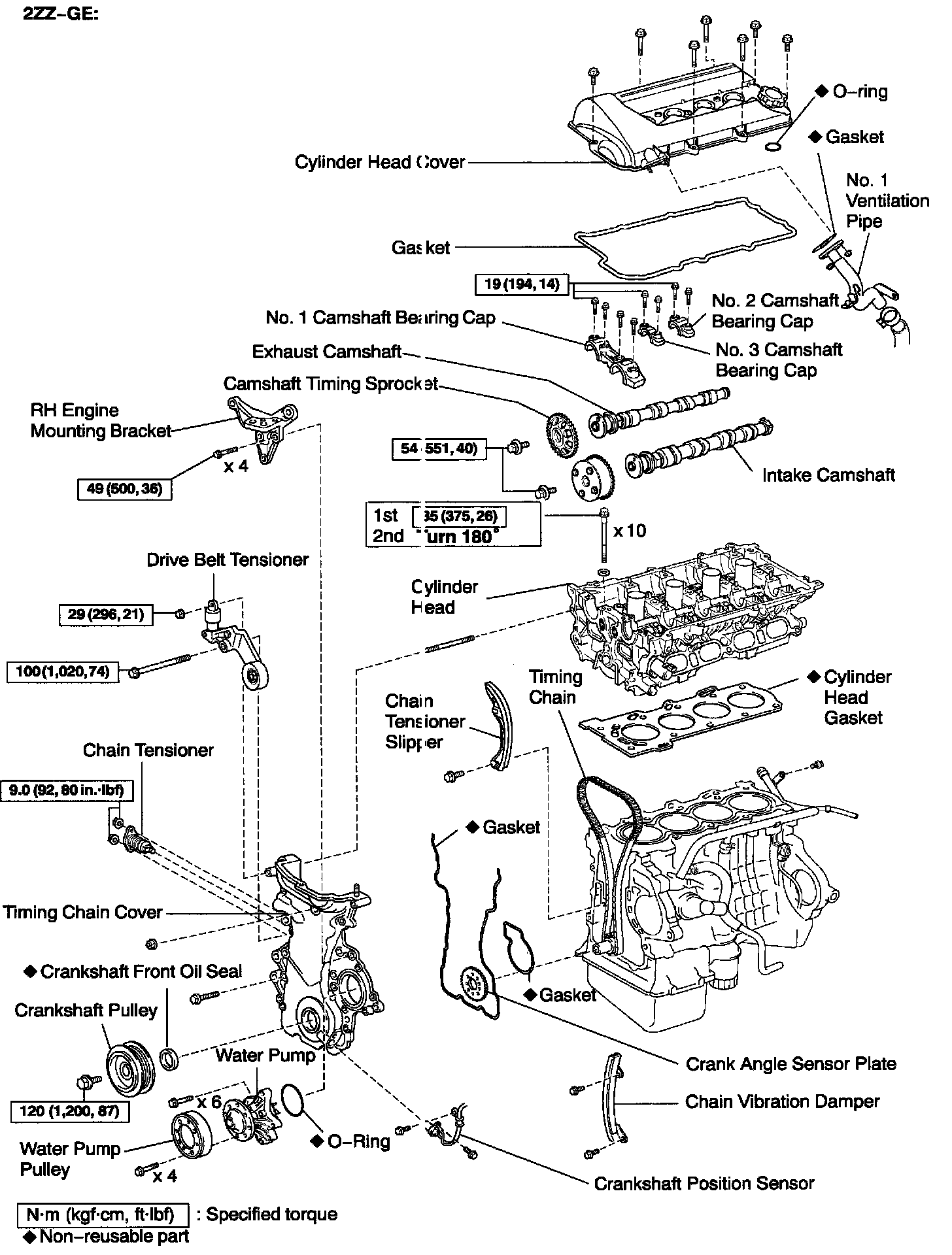 2ZZ-GE: 35 Nm (375 kgf-cm, 26 ft. lbs.)