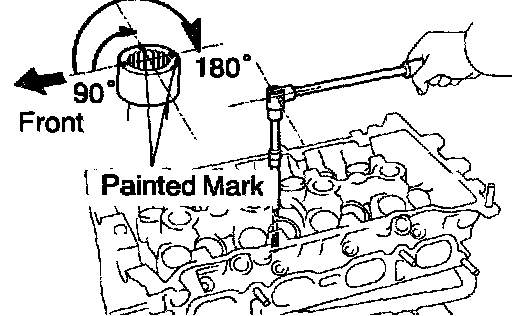c. Mark the front of the cylinder head bolt with paint.