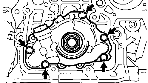 Remove the 5 bolts, oil pump and gasket.
