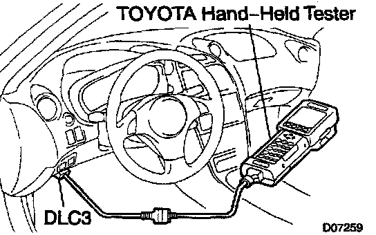 2. CONNECT TOYOTA HAND-HELD TESTER OR OBDII SCAN TOOL
