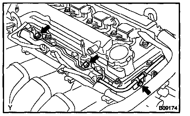 m. Tighten the 2 bolts holding the delivery pipe to the cylinder head.