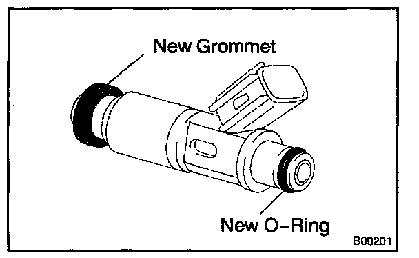 b. Apply a light coat of spindle oil or gasoline to new O-ring and install them to each injector.