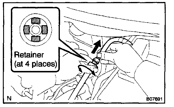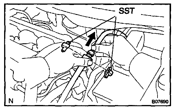- As there is retained pressure in the fuel pipe line, prevent it from splashing inside the engine compartment.