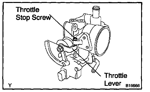 Check that there is no clearance between the throttle stop screw and throttle lever when the closed throttle position.