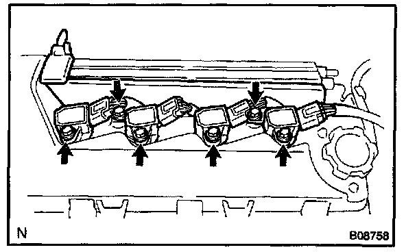 c. Remove the 4 bolts and pull out the 4 ignition coils (with igniter).