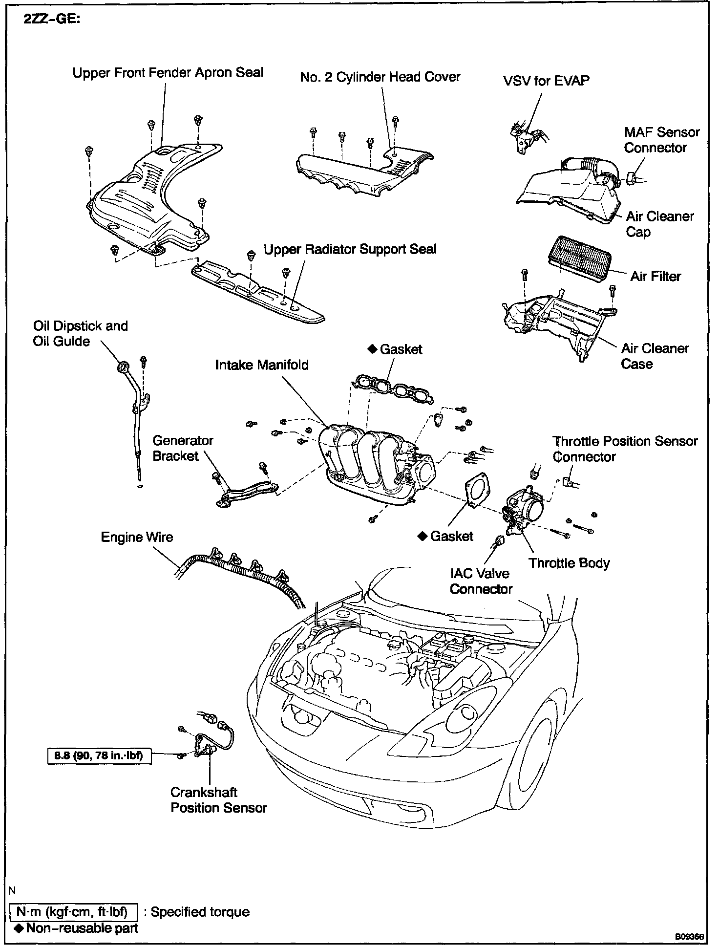 Torque: 8.8 N.m (90 kgf.cm, 78 in.lbf)