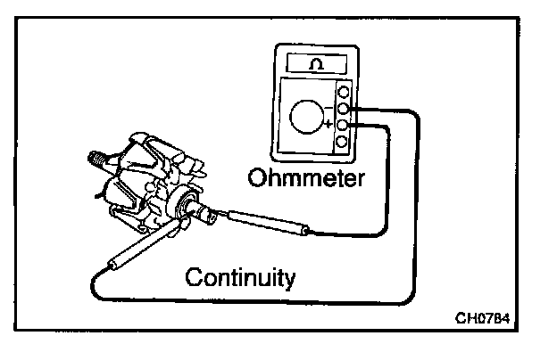 Using an ohmmeter, check that there is continuity between the slip rings.