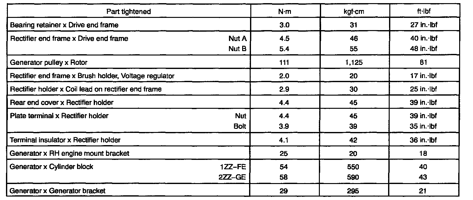 Charging - Torque Specification: