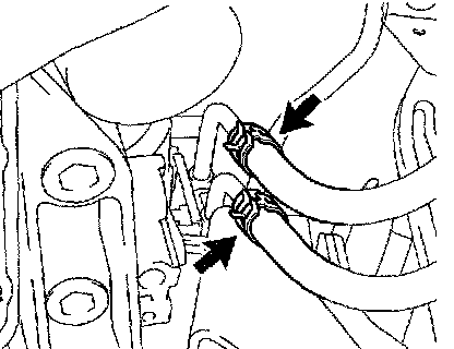 Loosen the 2 clips and disconnect the 2 oil cooler hoses.