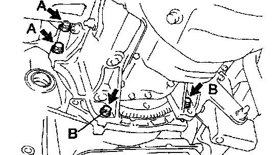 b. Remove the 2 bolts and starter.