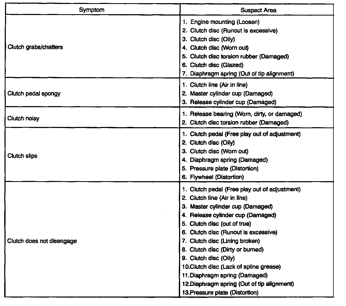 Clutch: Testing and Inspection