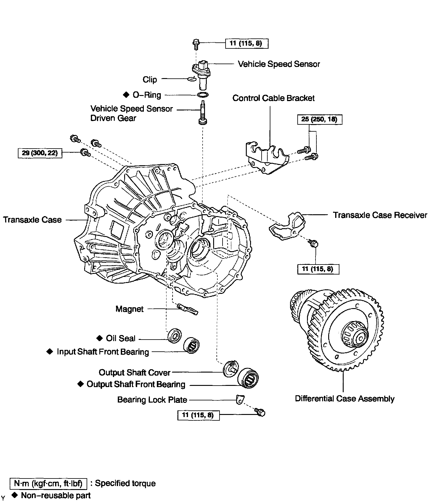 ^ When replacing the output shaft front bearing, replace the output shaft front bearing inner race along with it.