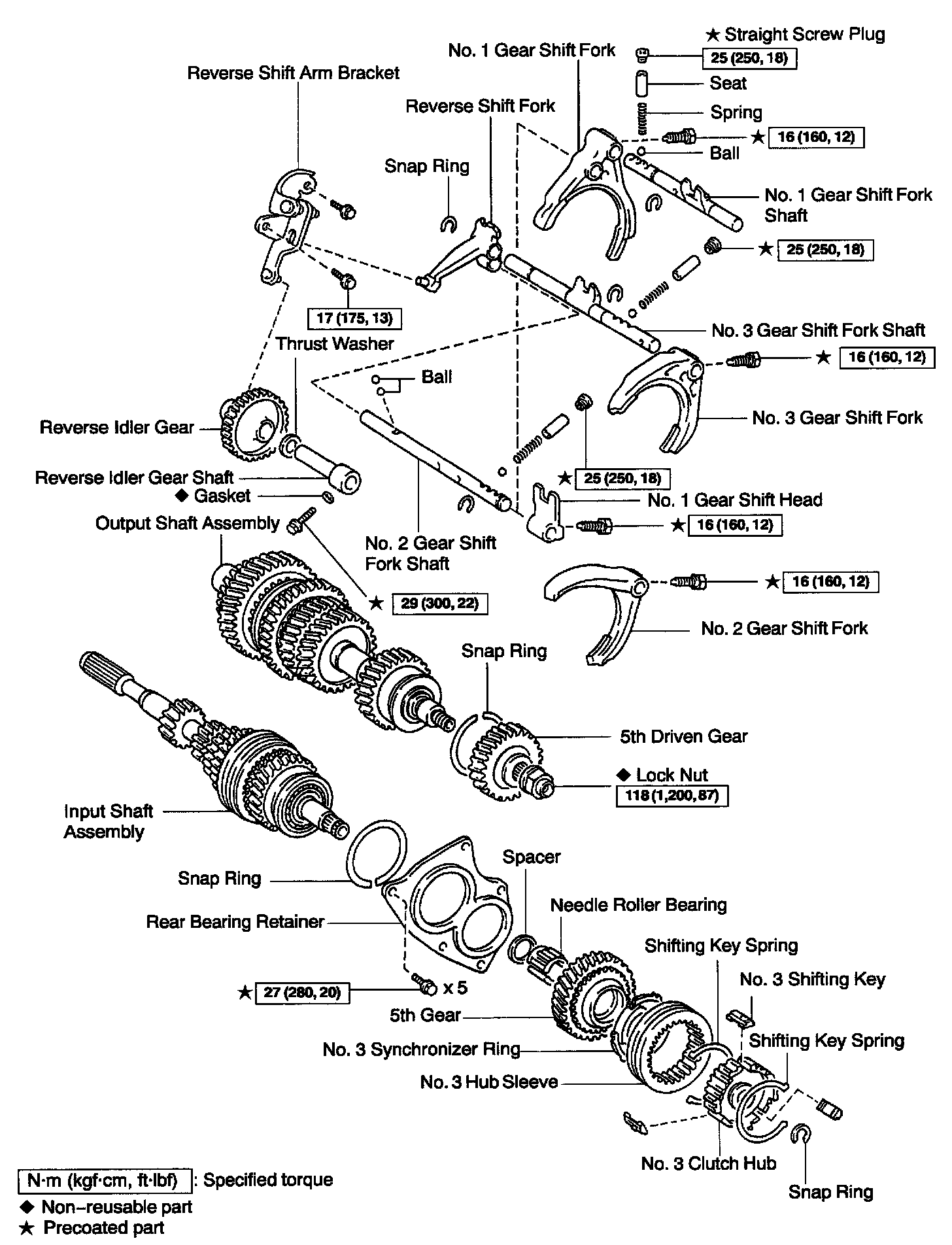 h. Remove the No. 1 and No. 2 gear shift forks.
