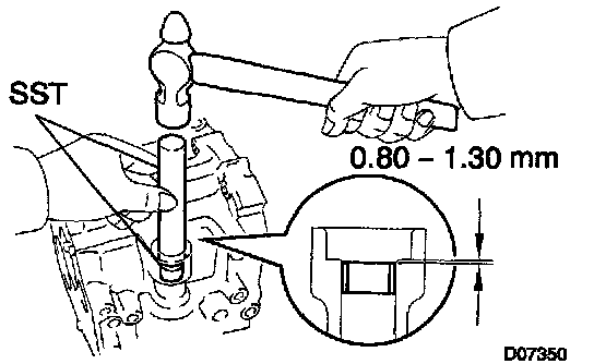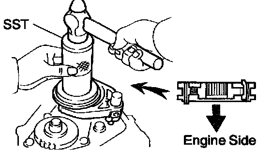 b. Using a socket wrench (17 mm) and plastic hammer, drive in a new oil seal.