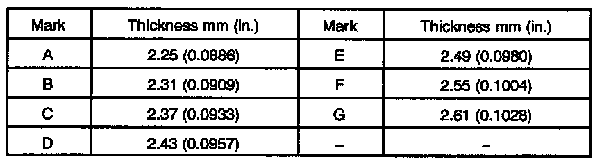 Standard clearance: 0.10 - 0.57 mm (0.0039 - 0.0224 inch)