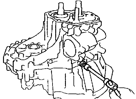 NOTICE: When driving out the bushing, be careful not to damage the transmission case by the socket wrench.