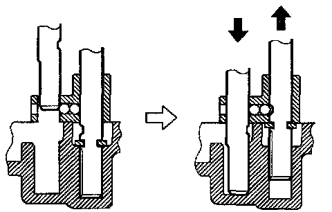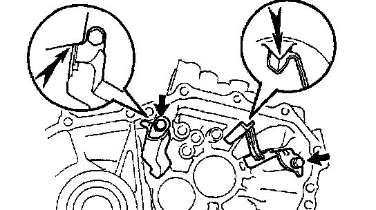 ^ Install the oil receiver pipes while placing it against the transmission case, as shown in the illustration.