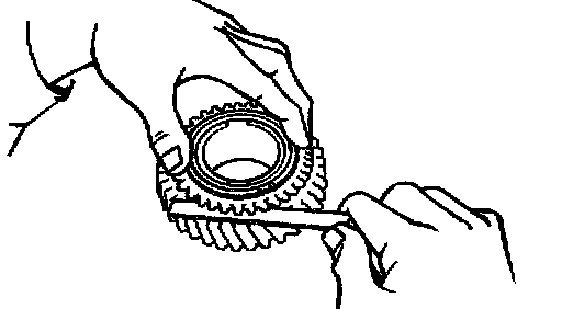 If the braking effect is insufficient, apply a small amount of the fine lapping compound between the synchronizer ring and gear cone. Lightly rub the synchronizer ring and gear cone together.
