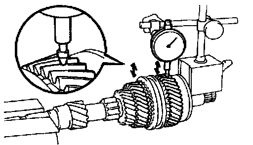 Using a dial indicator, measure the radial clearance between the gear and shaft.