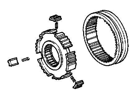 c. Place the No. 2 synchronizer ring (for the 4th gear) on the No. 2 hub sleeve assembly and align the No. 2 synchronizer ring slots with the No. 2 shifting keys.
