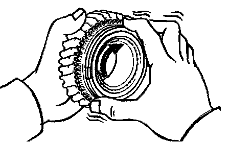 b. Check the braking effect of the synchronizer ring. Turn the synchronizer ring in one direction while pushing it to the gear cone. Check that the ring locks.