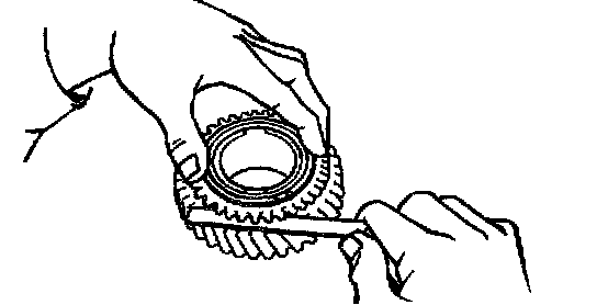 d. Using a feeler gauge, measure the clearance between the synchronizer ring back and gear spline end.