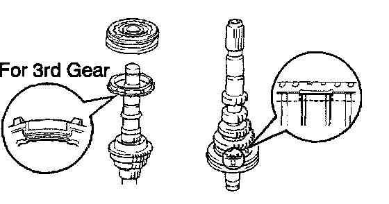 b. Install the 3rd gear and No. 2 synchronizer ring (for the 3rd gear).