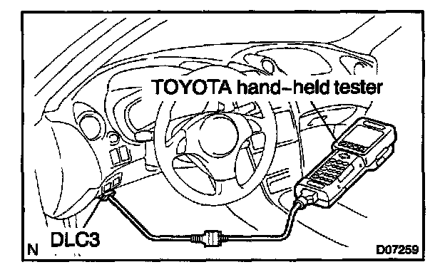 - To check the DTCs, connect an OBD II scan tool or TOYOTA hand-held tester to DLC3 on the vehicle. The OBD II scan tool or TOYOTA hand-held tester also enables you to erase the DTCs and check freeze frame data and various forms of engine data (For instruction book).