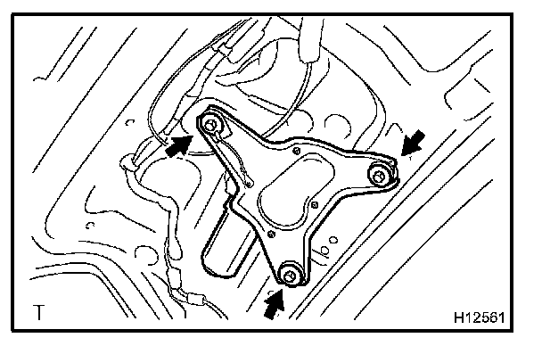 b. Unfasten the 3 bolts and remove the rear wiper motor.