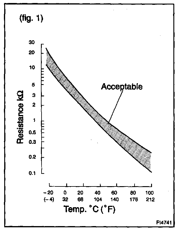 The lower the intake air temperature, the greater the thermistor resistance value, and the higher the intake air temperature, the lower the thermistor resistance value (See fig. 1).