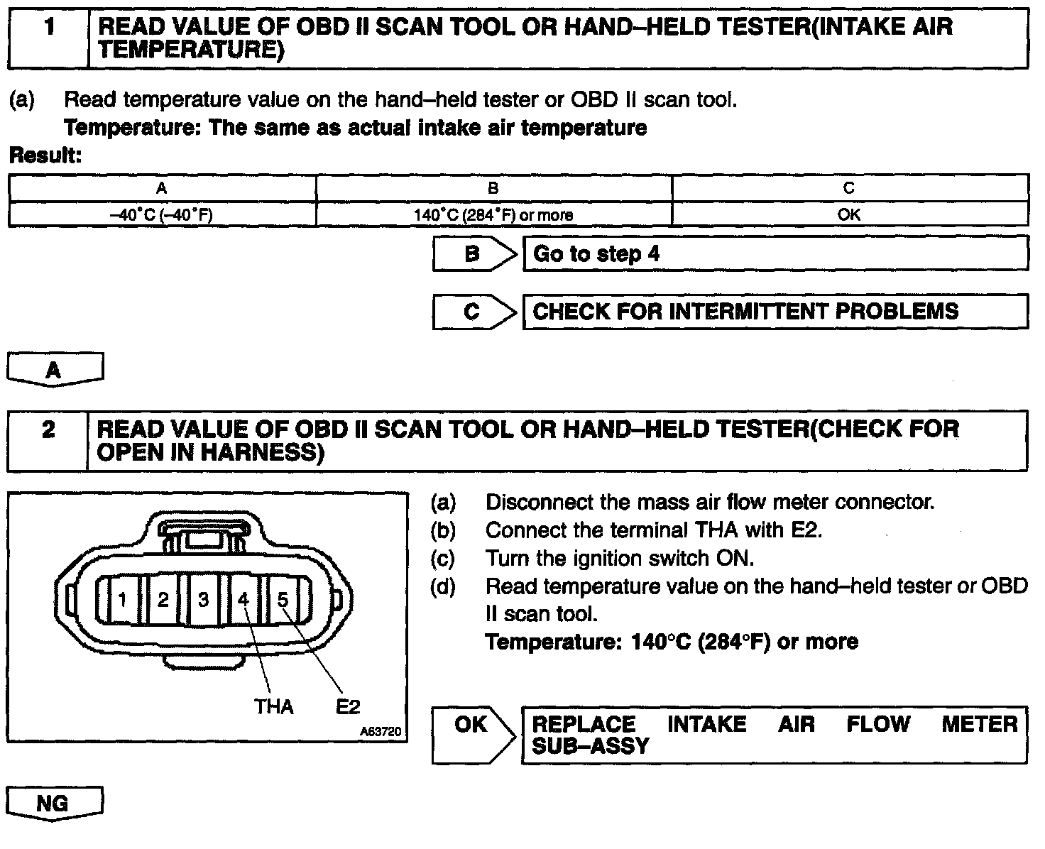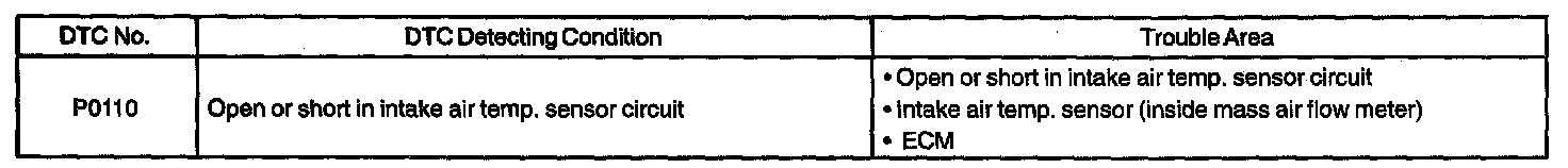 If the ECM detects the DTC "P0110", it operates the fall safe function in which the intake air temperature is assumed to be 20 °C (68 °F).