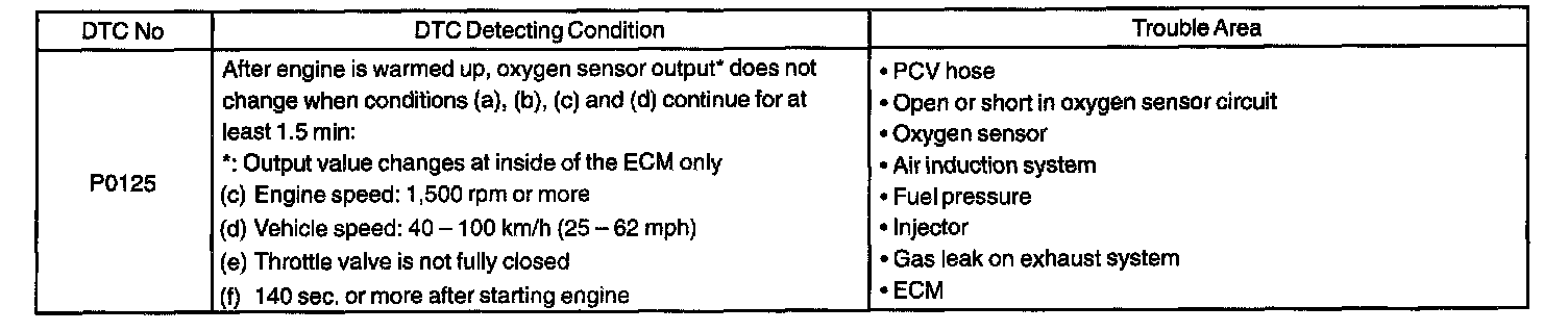DTC P0125 INSUFFICIENT COOLANT TEMP. FOR CLOSE LOOP FUEL CONTROLCIRCUIT DESCRIPTION