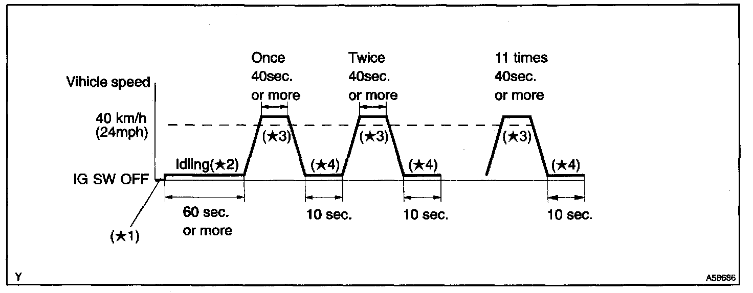 4. Drive the vehicle at 40 km/h (24 mph) or more for 40 seconds or more. (*3)