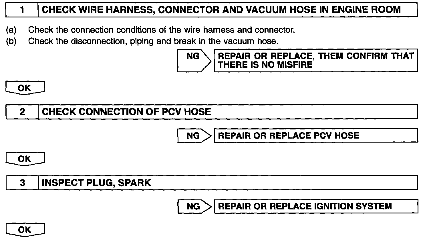 - In case that the misfire cannot be reproduced, this may be because of the driving with the shortage of fuel, the use of improper fuel, a stain of ignition plug and etc.
