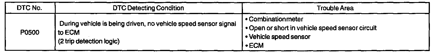 DTC P0500 VEHICLE SPEED SENSOR MALFUNCTIONCIRCUIT DESCRIPTION