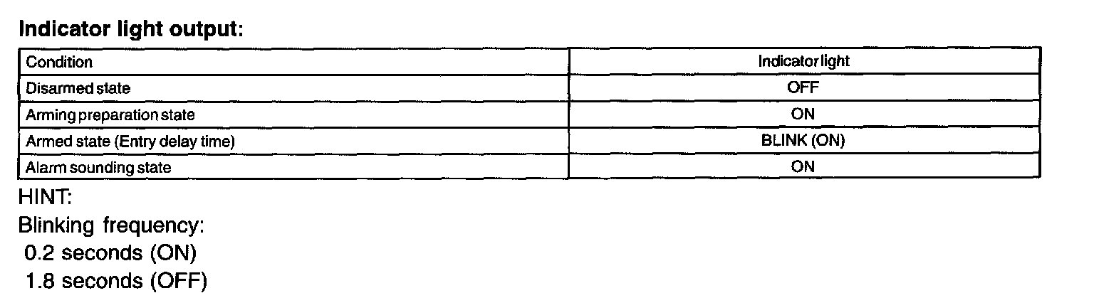 HINT: The entry delay time can be selected among 0, 14, 30 seconds by the customizing function.