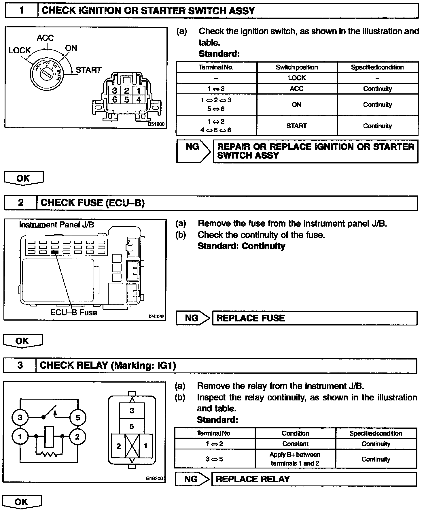 If the ignition switch is turned to the ON position, battery positive voltage is applied to the switches, such as terminal IG of the ECU.