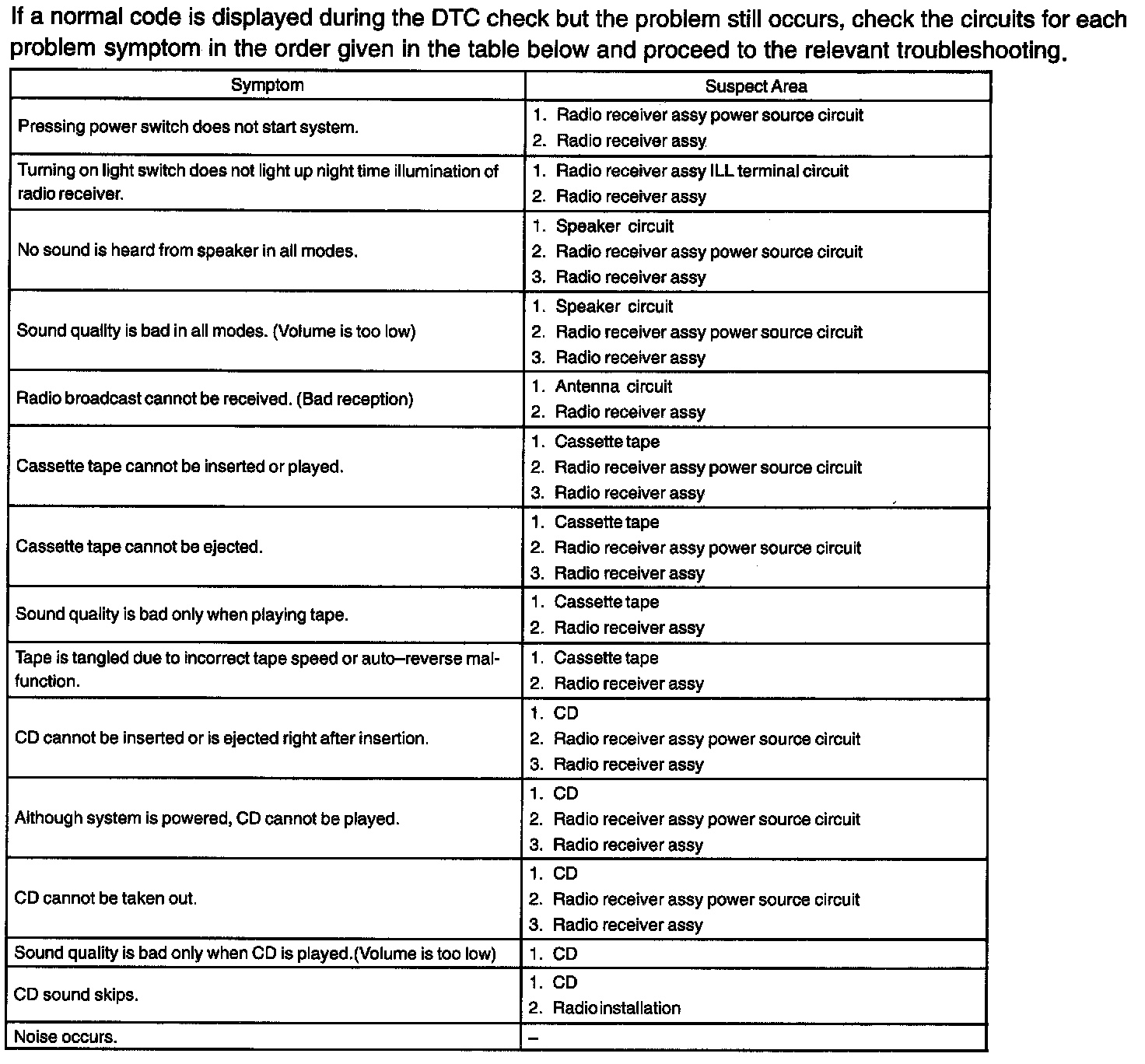 Problem Symptoms Table: