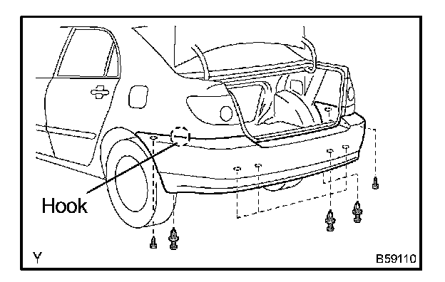 c. Disengage the hook and remove the rear bumper cover.