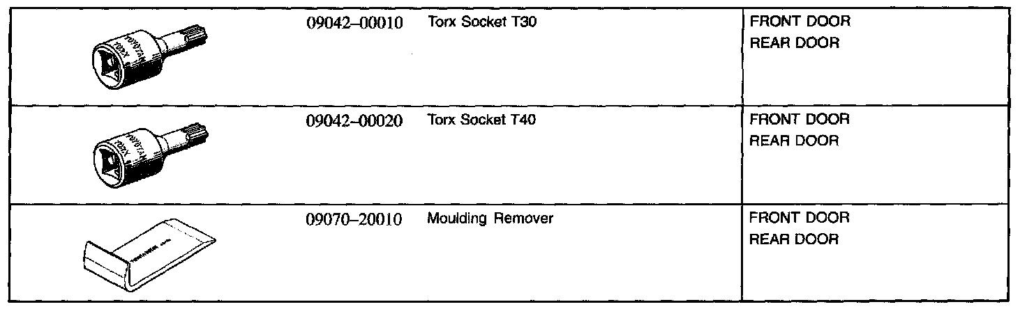 Doors, Hood and Trunk: Tools and Equipment