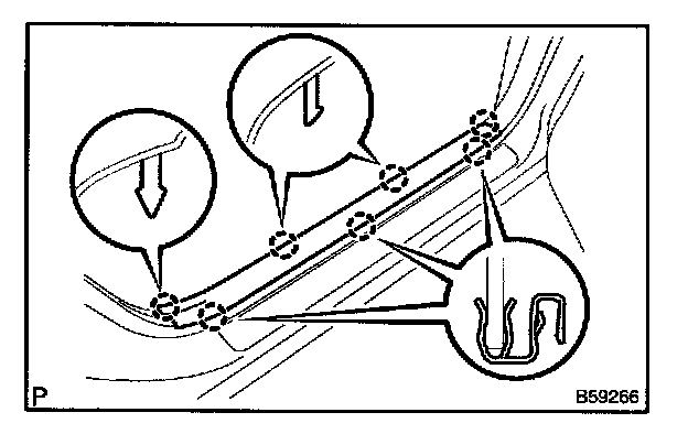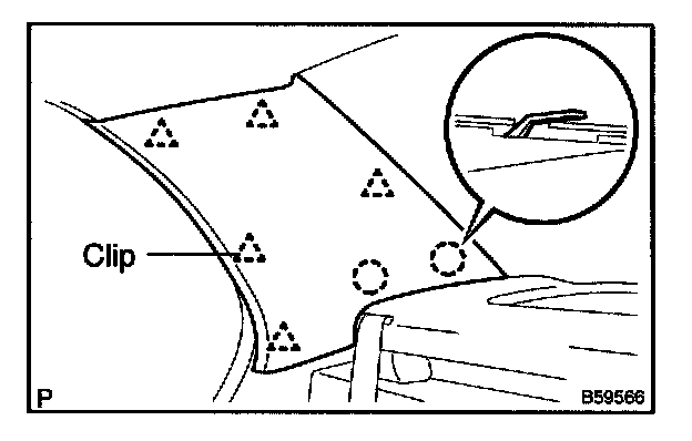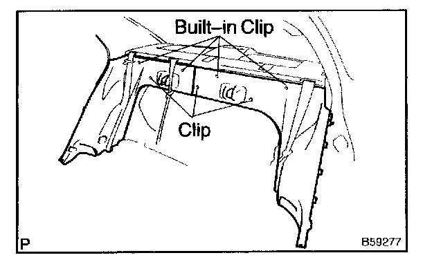 a. Remove the 2 clips and 2 built-in clips room partition board LH.