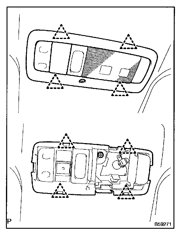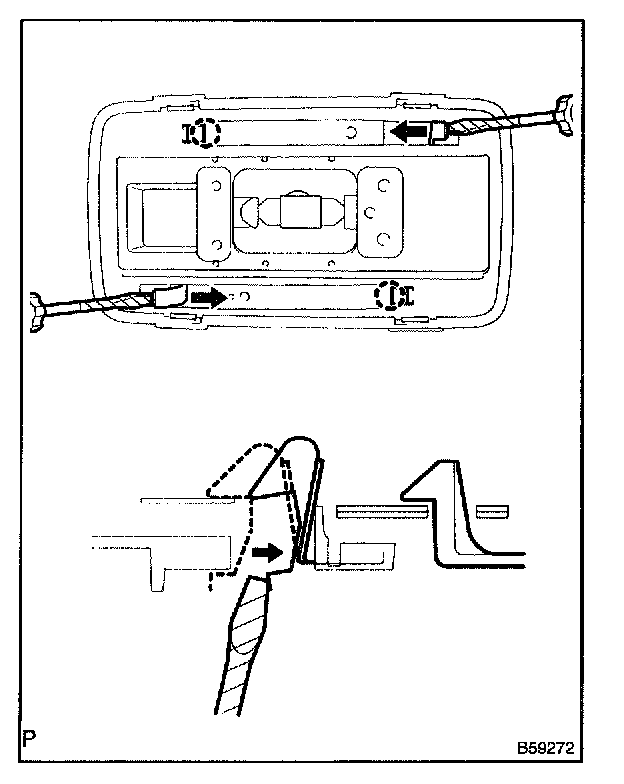 b. Using a screwdriver, remove the room lamp assembly No.1 as shown in the illustration.
