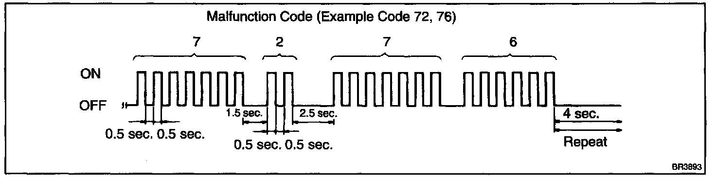 - If every sensor is normal, a normal code is output (A cycle of 0.25 sec. ON and 0.25 sec. OFF is repeated).