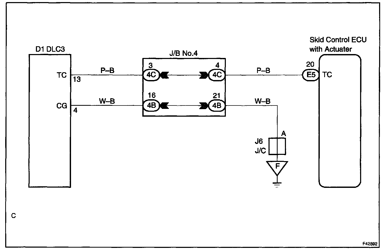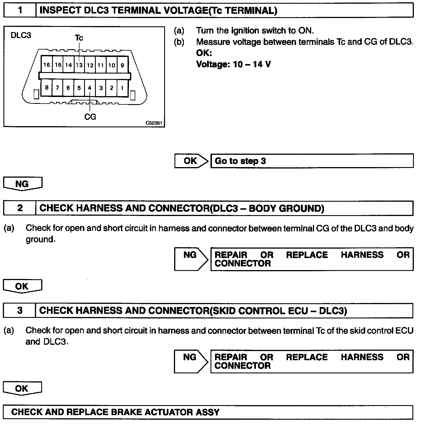 Connecting terminals Tc and CG of the DLC3 causes the ECU to display the DTC by flashing the ABS warning light.