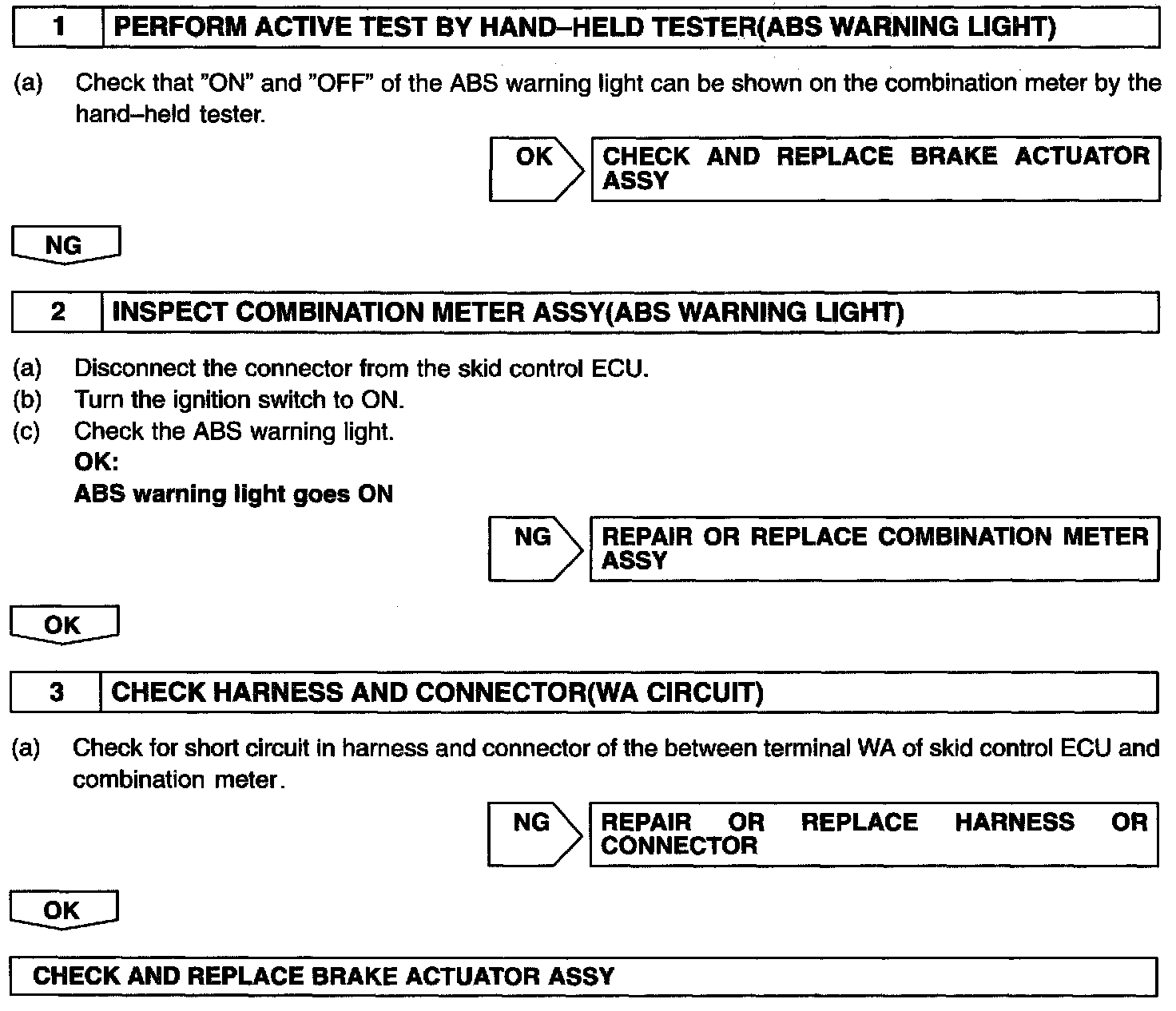 CIRCUIT DESCRIPTIONIf the ECU detect trouble, it will prohibit ABS control, turn on ABS warning light, and store the DTC.
