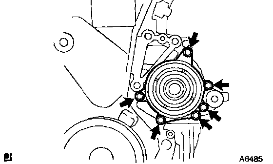 a. Remove the 6 bolts and water pump.