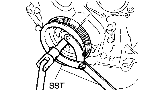 b. Using SST, remove the crankshaft pulley bolt.