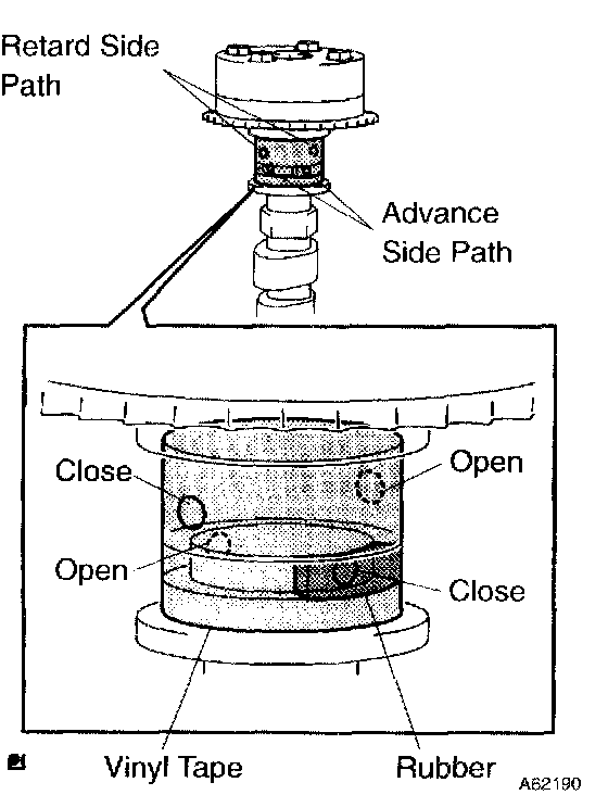 HINT: Two advance side paths are provided in the groove of the camshaft. Plug one of the path with a rubber piece.