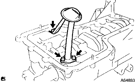b. Insert the blade of SST between the bearing cap and oil pan, and cut off applied sealer and remove the oil pan.